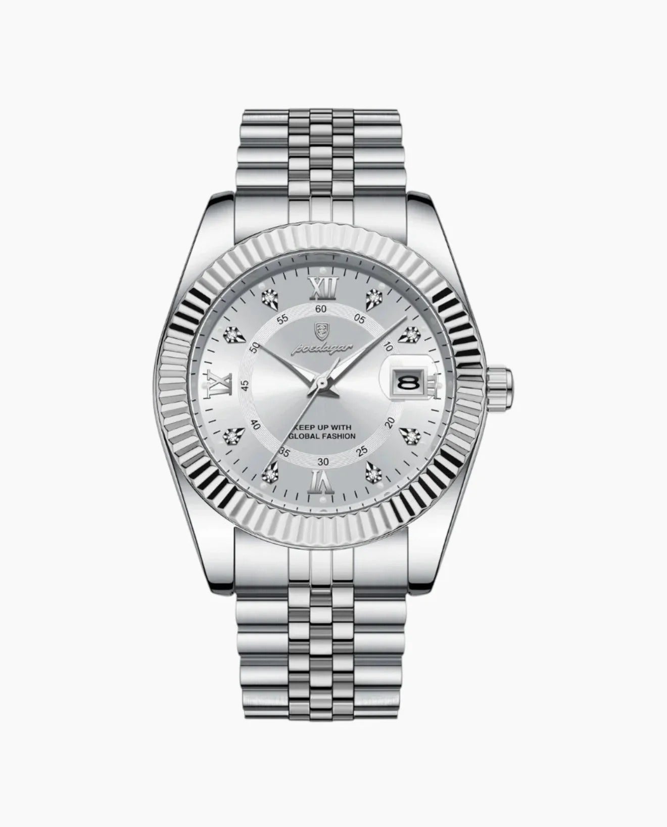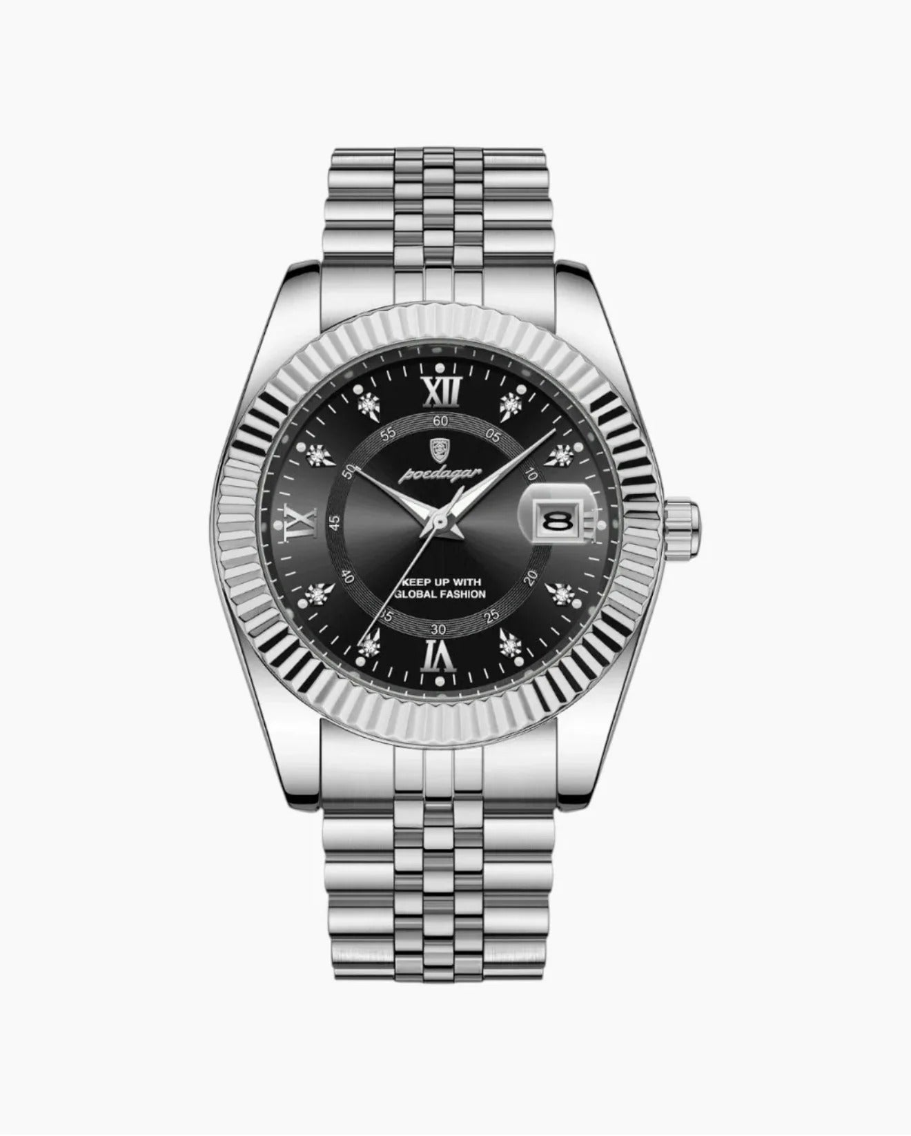 It’s crafted with premium stainless steel and finished with a high-polish bracelet and fluted bezel for maximum durability and brilliance.